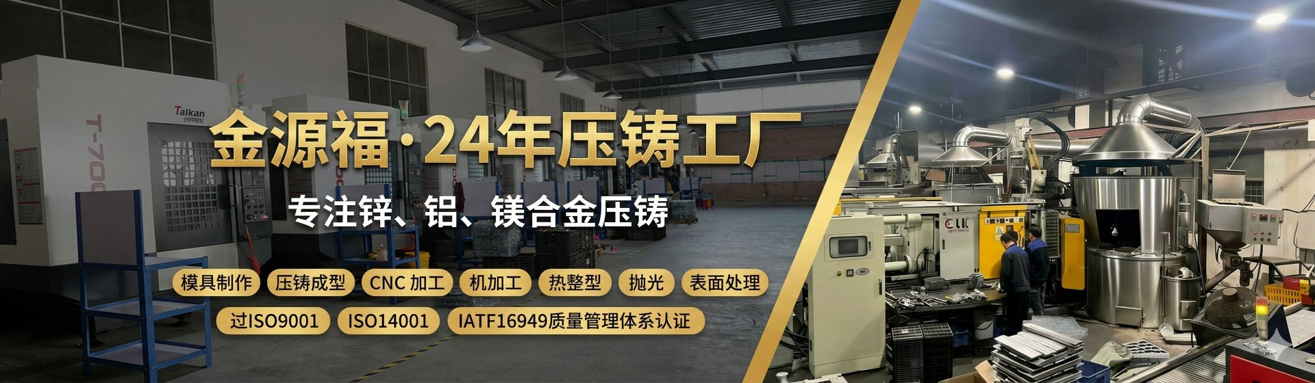 金源福已通过 ISO9001、ISO14001、IATF16949 质量管理体系认证,专业生产锌、铝、镁合金精密压铸件,并提供高精度 CNC 精加工,为各行业提供一站式定制化压铸解决方案,产品远销日本、欧美、澳洲等多个国家与地区。
